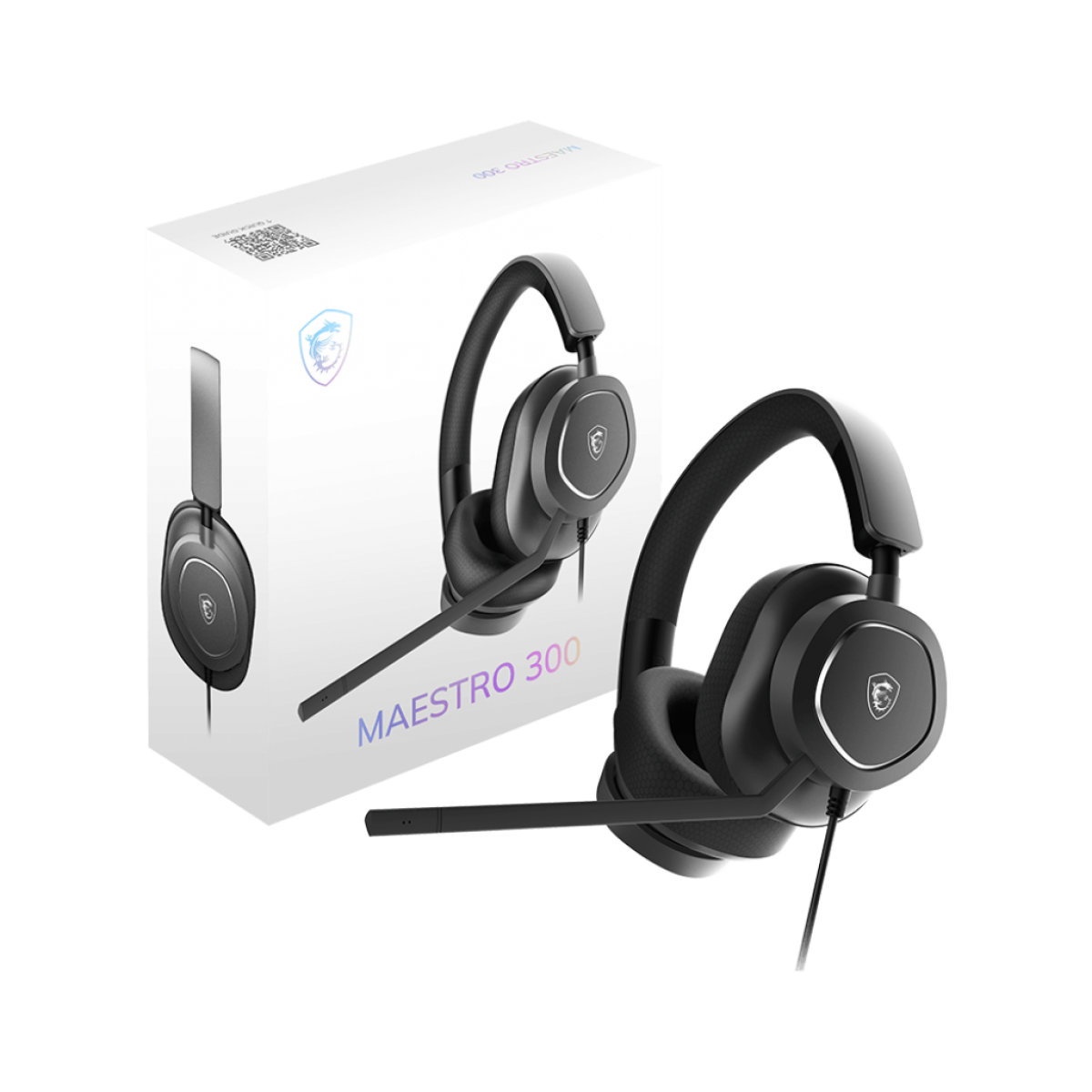 سماعة الألعاب MSI Maestro 300 – محركات نيوديميوم 40 مم، ميكروفون أحادي الاتجاه (قلبي الشكل)، خفيفة الوزن ومريحة، اتصال متعدد المنصات، USB-C سلكي